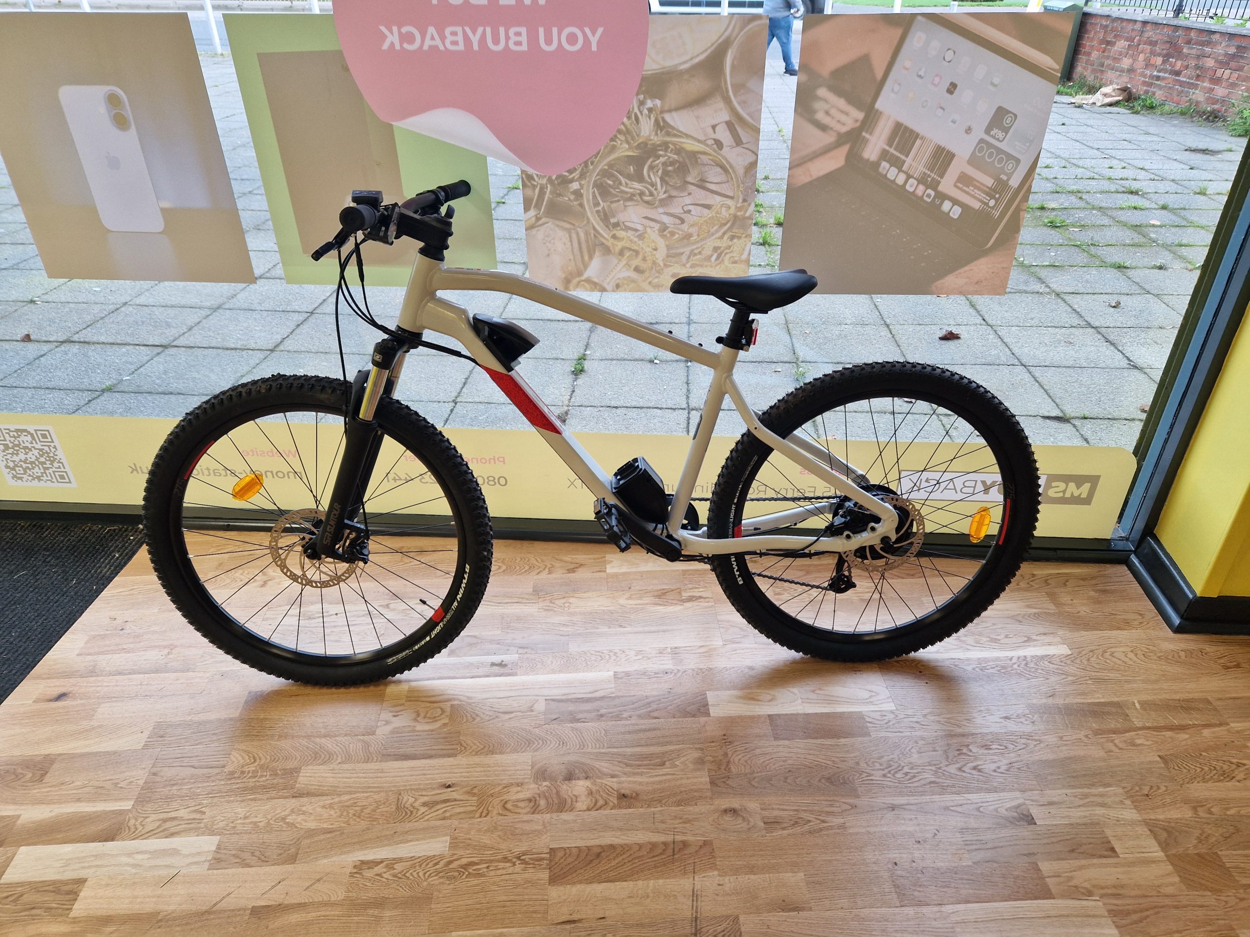 Be the first to review “ROCKRIDER 27.5″ Hardtail Electric Mountain Bike E-ST 100 – White/Red”